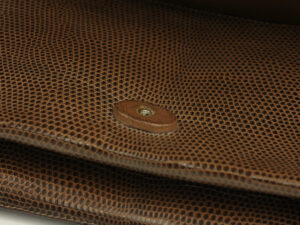 | Generellt: En helt fantastisk CHANEL Single Full Flap gjord av ödla. Otroligt fint skick för sin ålder med begränsat slitage. En riktig raritet, vacker färg. Väskan är mycket dyr som ny och är en exklusiv väska. Levereras med äkthetsintyg och dustbag från CHANEL. |