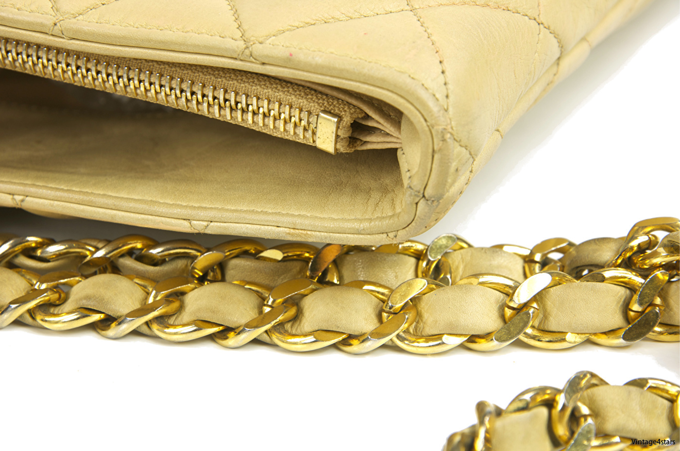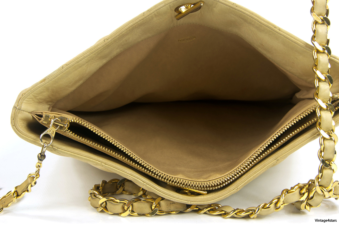 i beige lammskinn.